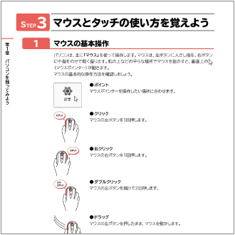 マウス・タッチ操作、文字入力、インターネット、メール、セキュリティ対策まで、この1冊で学習できます。パソコン生活の第一歩として活用していただけます。