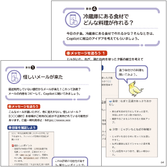 この本では、新しい友だちと出会うように、生成AI「Copilot(コパイロット)」と楽しくおしゃべりするところから始めます。慣れてきたら日常で困ったことを相談したり、アイデアを提案してもらったり、生成AIを相棒に新しいことに挑戦していきます。スマホで、今すぐに生成AIデビューをするのに、最適な一冊です。