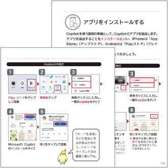 「スマホの基本操作も苦手なのに、いきなり生成AIなんて始めても大丈夫…?」と思った方もご安心ください。スマホの「困った」を解決する操作や、Copilotを使ううえで役立つ操作も丁寧にフォローします。